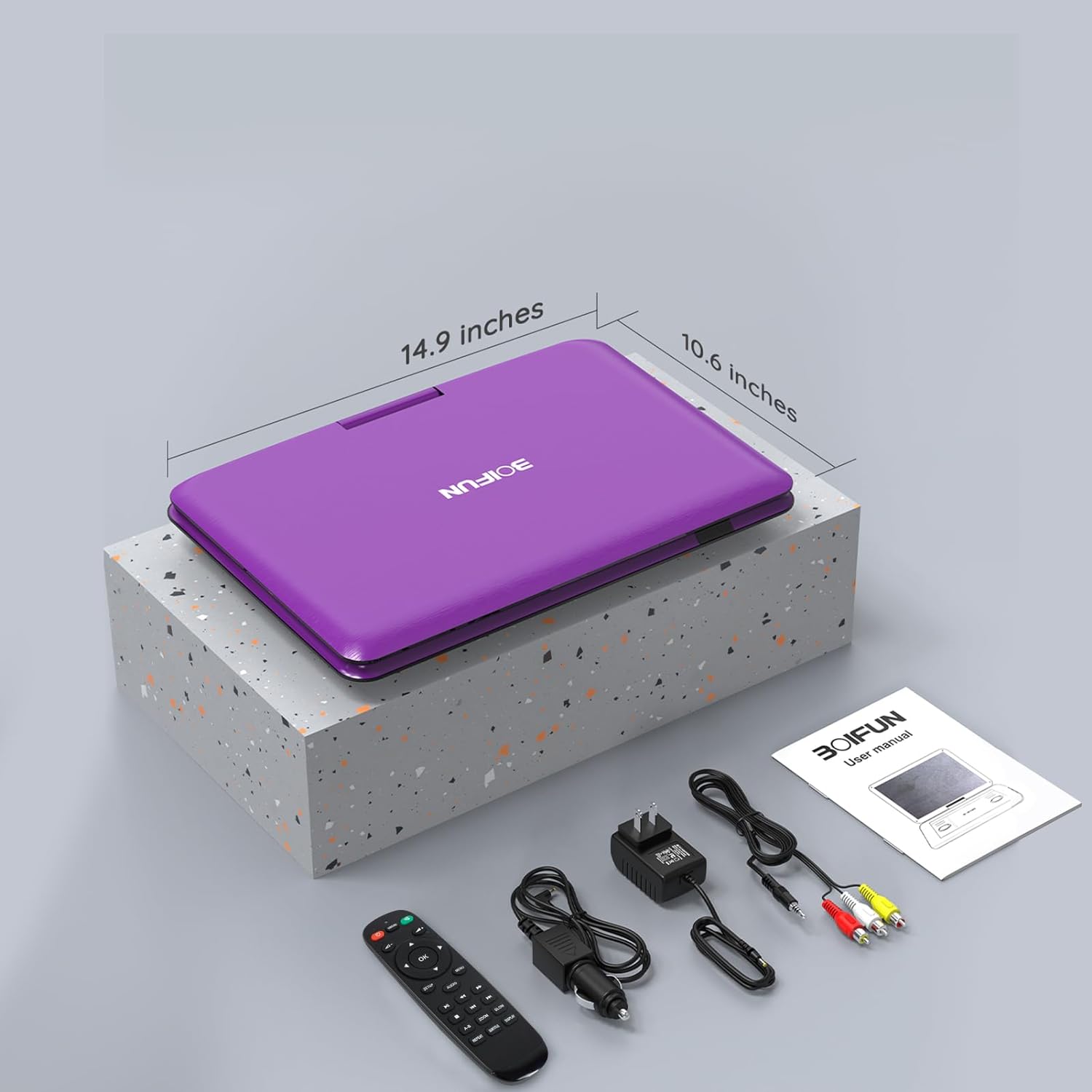 BOIFUN 17.5″ Portable DVD Player with 15.6″ Large HD Screen, 6 Hours Rechargeable Battery, Support USB/SD Card/Sync TV and Multiple Disc Formats, High Volume Speaker, Purple