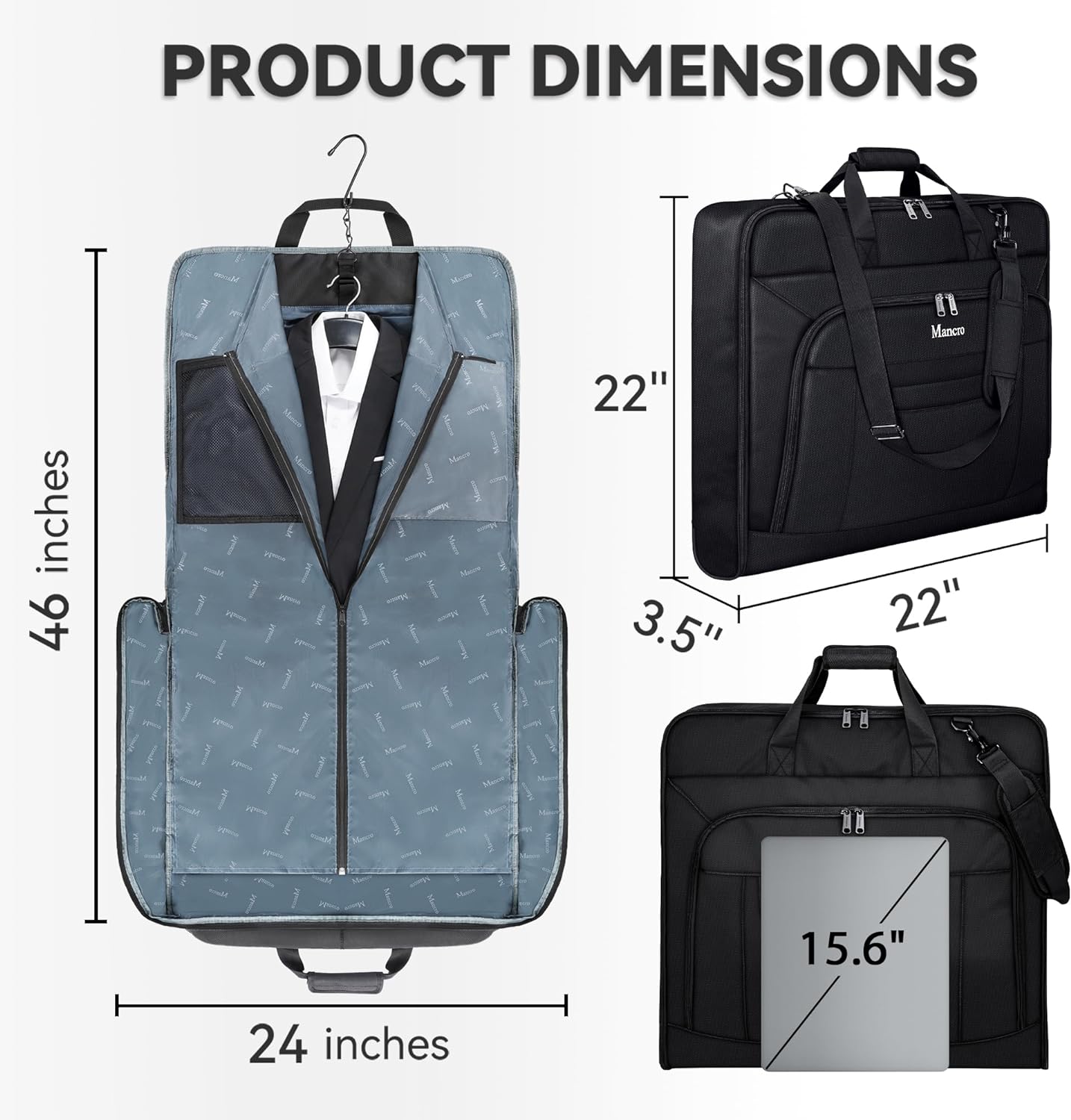 Garment Bags for Travel, Large Travel Suit Bag for Men Women with Shoulder Strap, Wrinkle Free Carry On Garment Bags for Hanging Clothes, Business Foldable Hanging Luggage Bag for Travel, Black